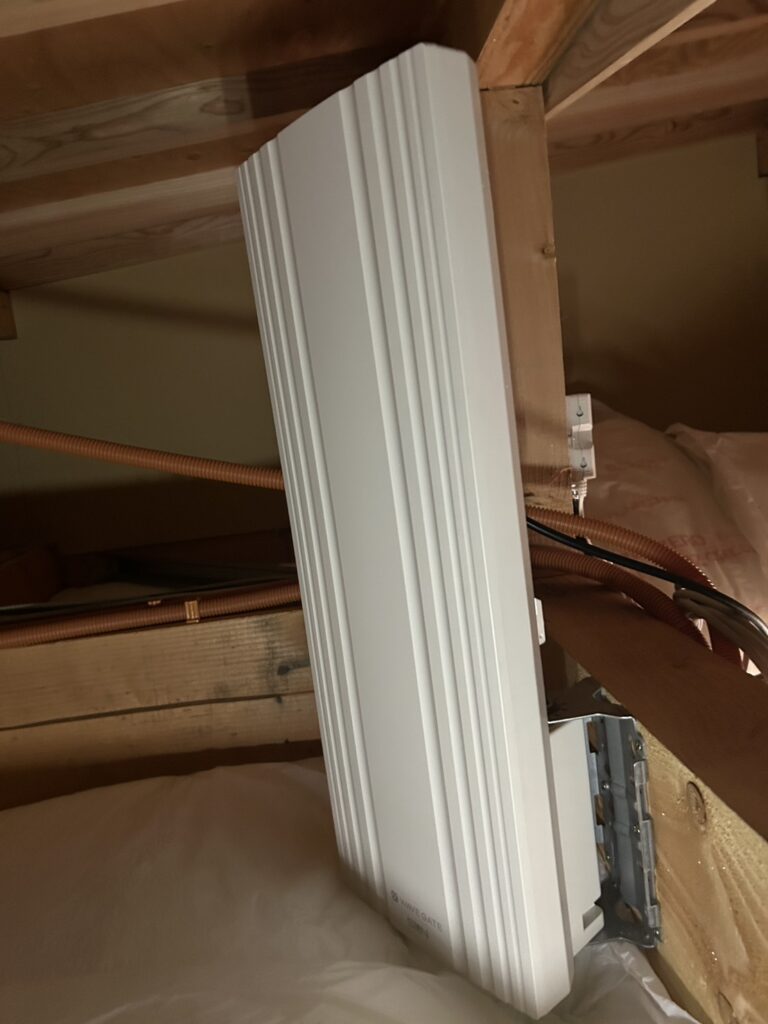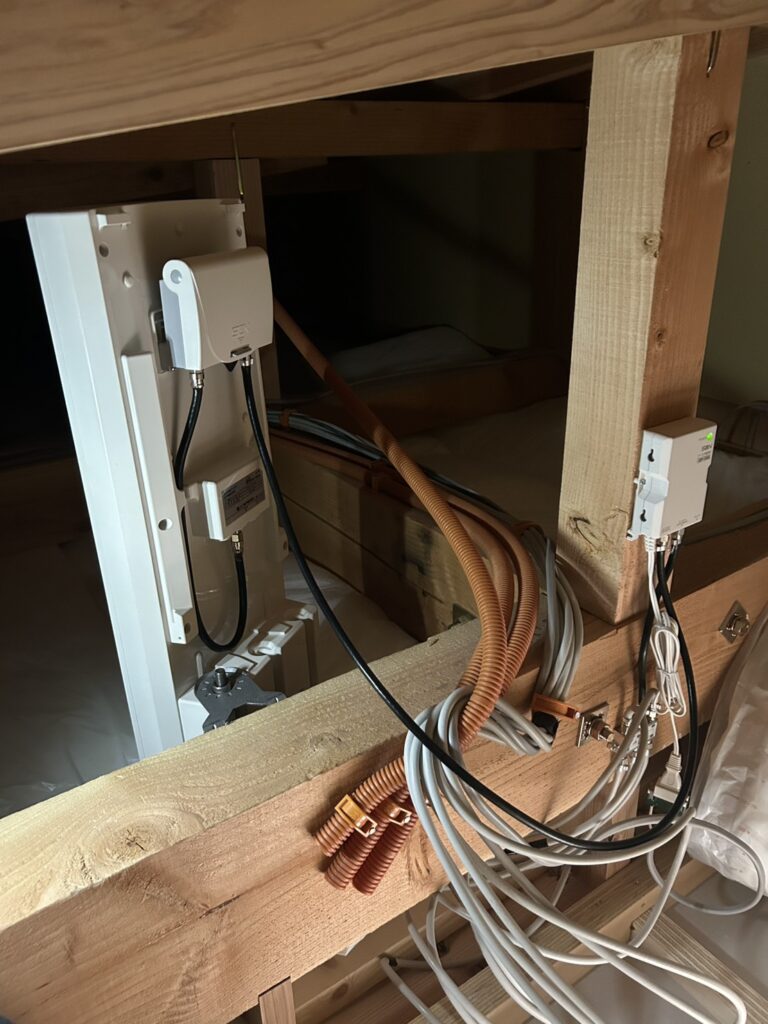 現地調査を行い、屋根裏でも十分な電波受信が可能な環境であることを確認したため、屋根裏設置をご提案しました。