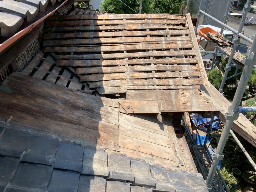 屋根全体の状態を確認したうえで、損傷が大きい片面のみを重点的に葺き替える「部分工事」での対応をご提案しました。
