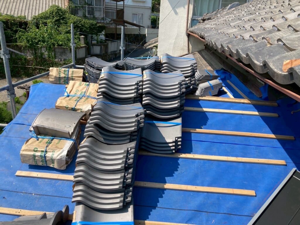 - 新しい屋根材を施工(軽量耐風タイプの平板瓦を採用)