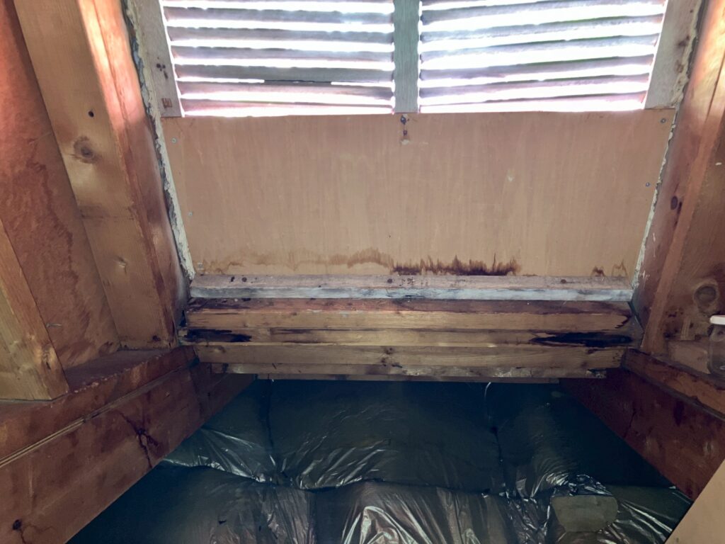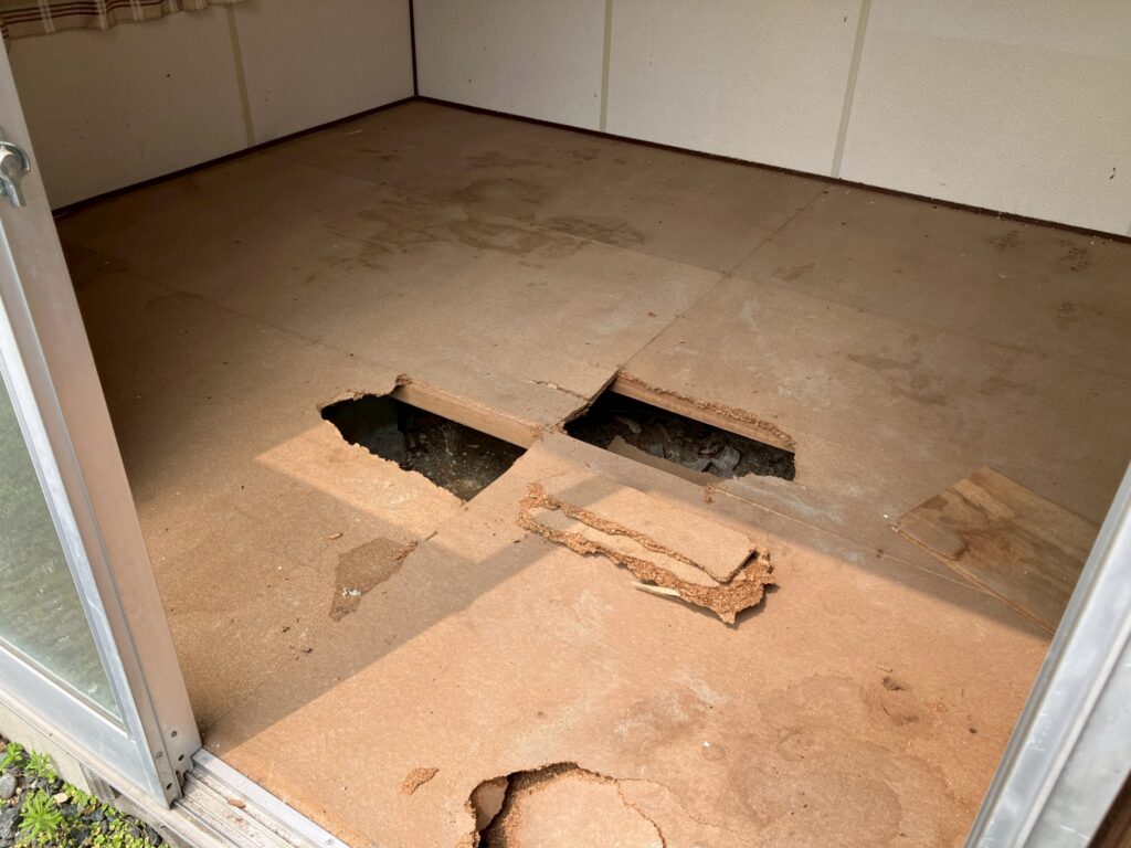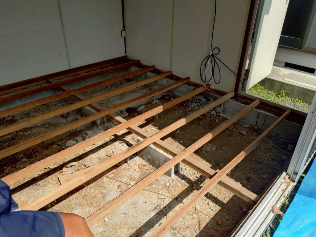 - 床下を点検し、腐食した根太・床板の一部を撤去