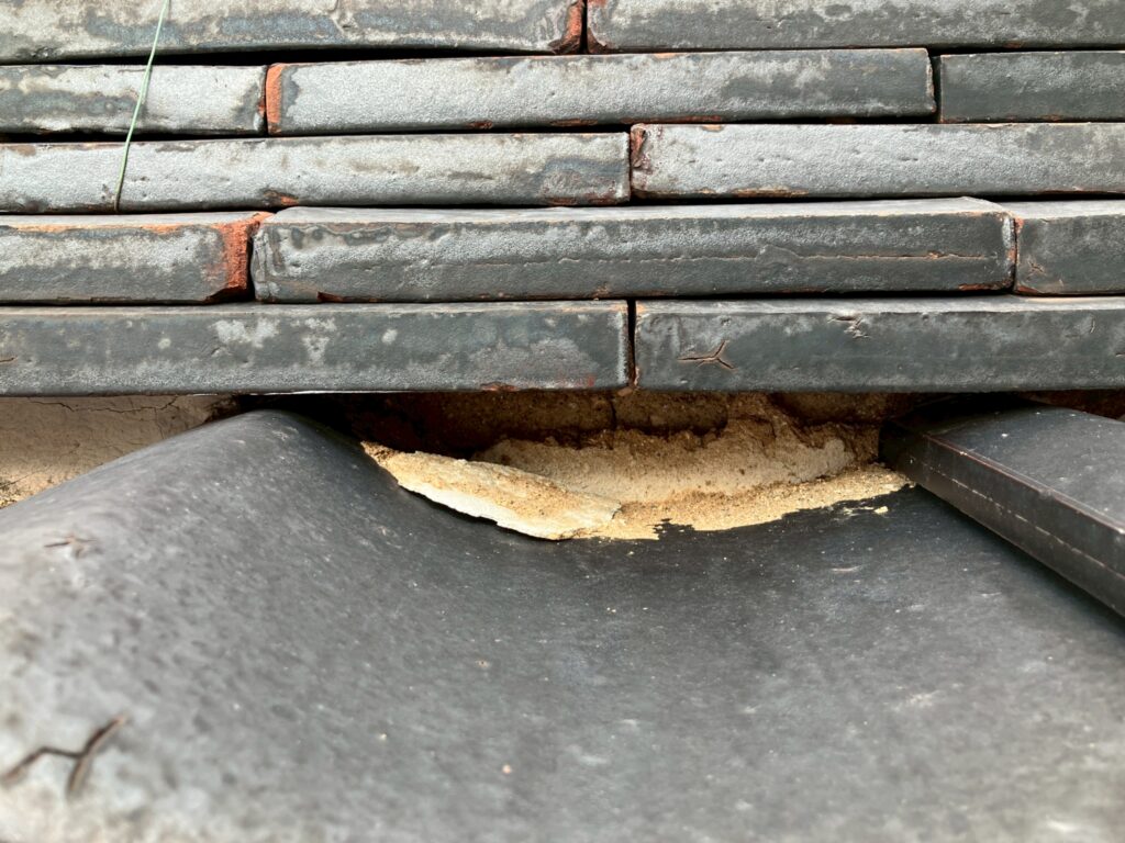 → 一部の屋根材にズレやひび割れ、苔の繁殖が確認されました。