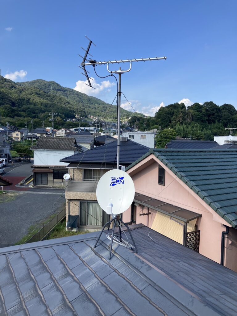福山市にて、テレビ受信環境改善のため、八木式アンテナとBSアンテナの交換工事を行いました。