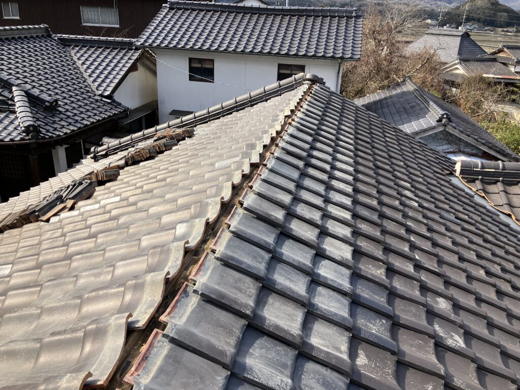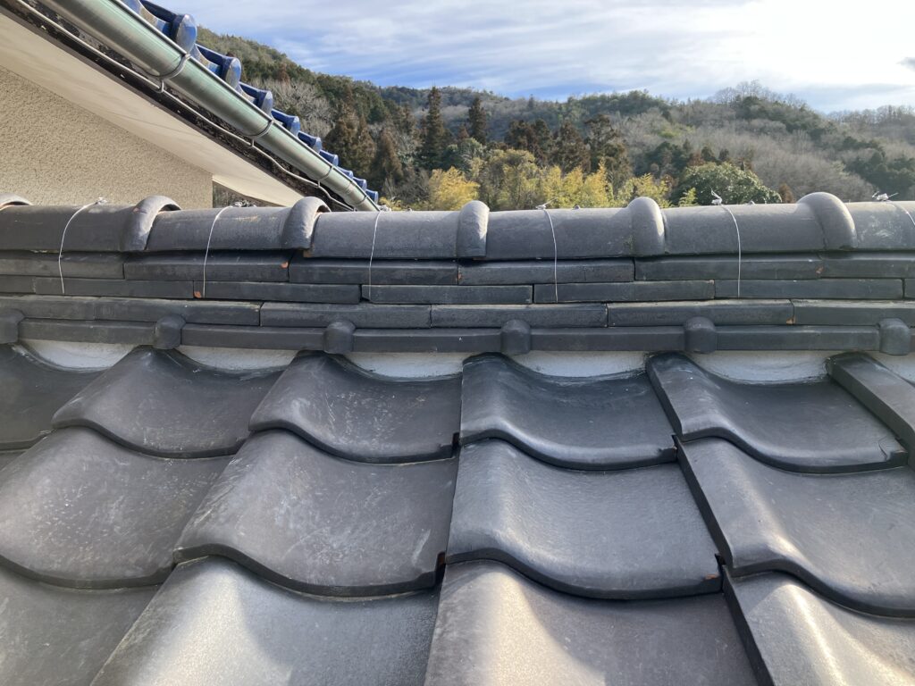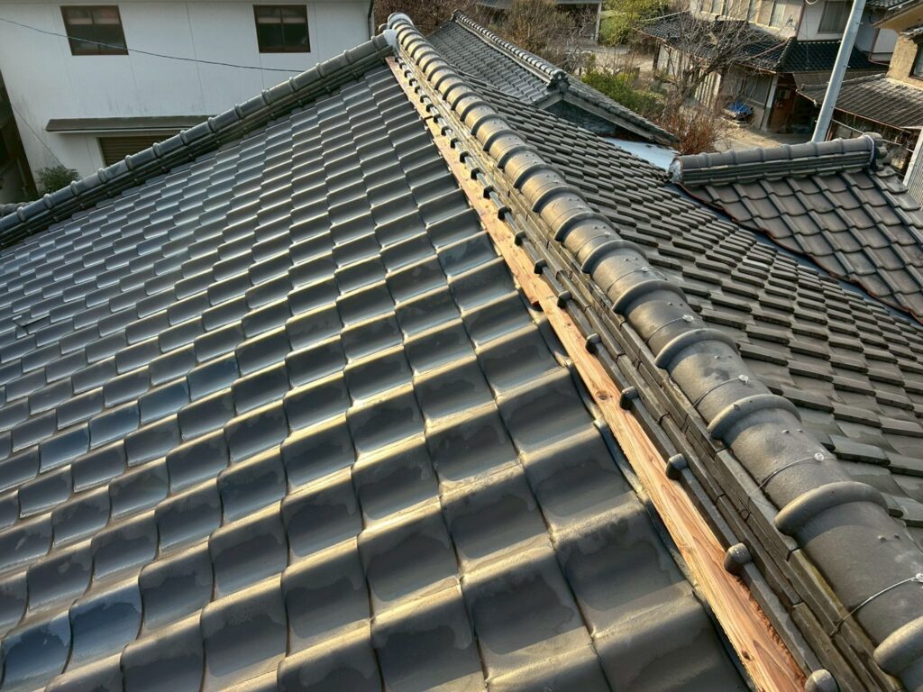 巻替後は棟瓦がまっすぐ整い、強度・美観ともに改善しました。